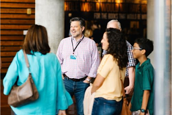Once in the Watermark Kids building, head to the Welcome Desk for check-in. You’ll see leaders in yellow t-shirts. After checking in, a leader will walk you and your child to the right classroom.